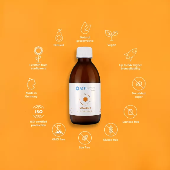 ACTINOVO Vitamina C Lipozomală oferă cea mai înaltă biodisponibilitate de vitamina C (cantitatea de substanță activă eliberată și absorbită în organism), de 95-98%.