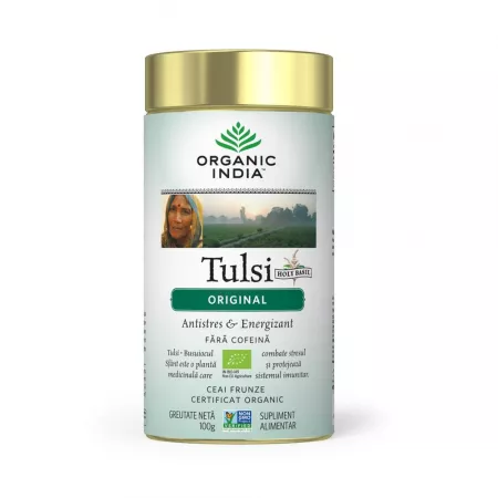 Există mai multe tipuri de Tulsi, dintre care Tulsi Krishna, Tulsi Vana și Tulsi Rama sunt cele mai cunoscute. Fiecare dintre ele are un aspec, un gust și un miros diferit, iar combinația dintre cele trei creează un produs echilibrat, cu numeroase beneficii pentru sănătate. Cele trei soiuri sacre de Tulși cu mare putere tonică sunt amestecate în Organic India Ceai Tulsi (Busuioc Sfânt) Original, Antistres Natural & Energizant pentru a crea aceasta delicioasă, calmantă, dar în același timp energizantă infuzie cu note citrice de lămâie din Vană, tonuri ușor condimentate de Krishna și profunzimea calmantă a Ramei.
